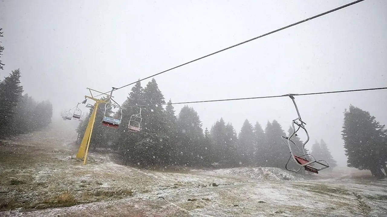 Her yıl yerli ve yabancı birçok turistin ziyaret ettiği Uludağ’da sıcaklıkların düşmeye başlamasıyla zirvede kar yağdı.